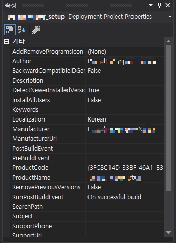 지금 진행중인 setup 프로젝트를 클릭하면 속성창에 ProductCode 가 아래 그림과 같이 나오는데 복사 해놓고