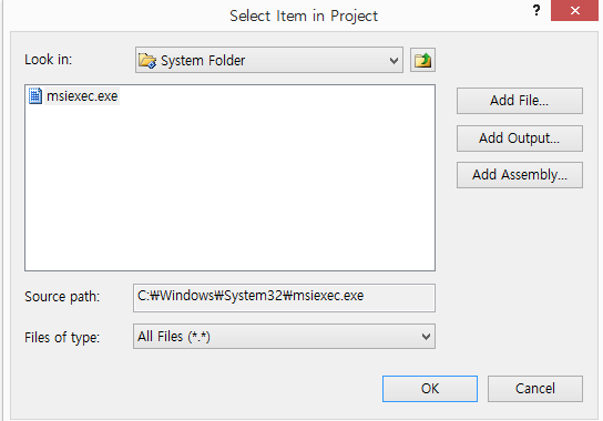 파일은 C:\Windows\System32\msiexec.exe <- 파일 선택.
