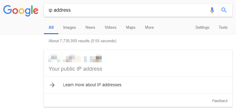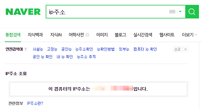 Google에 들어가서 'IP address'라고 검색하거나, 네이버에 들어가서 'IP 주소'라고 검색하면 IP 주소를 알려줍니다.